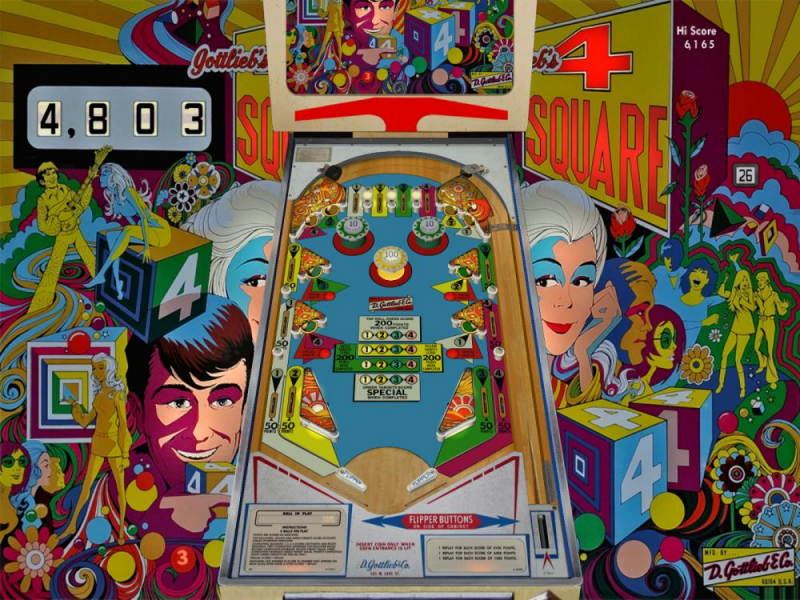 http://roguepinball.com/index.php?action=downloads;sa=view;down=579New VP9 Build of the 1971 Gottlieb Game 4 Square.  4 Square, designed by Ed Krynski with Art by Gordon Morrison, was released in June 1971. 2,200 units were produced so this game is only moderately rare, but as I learned finding one in good condition is a challenge. 4 Square has a simple rule set, with the goal being to complete the 1-2-3-4 sequence multiple times.  Scoring values increase with each sequence completed. There are five ways to make each number including targets and lanes. If you like sequence based games, this one will hold your attention.